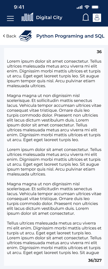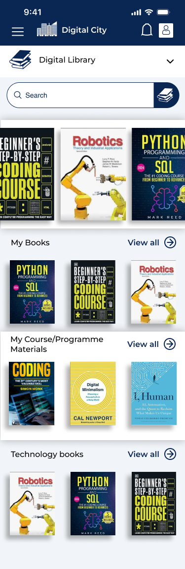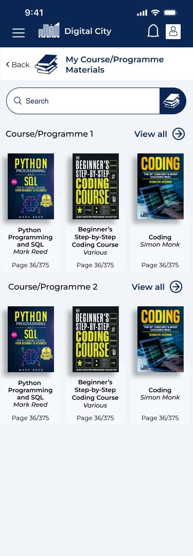 - User also has direct access to any reading materials involved with Courses or Programmes involved with the Digital City Digital School.