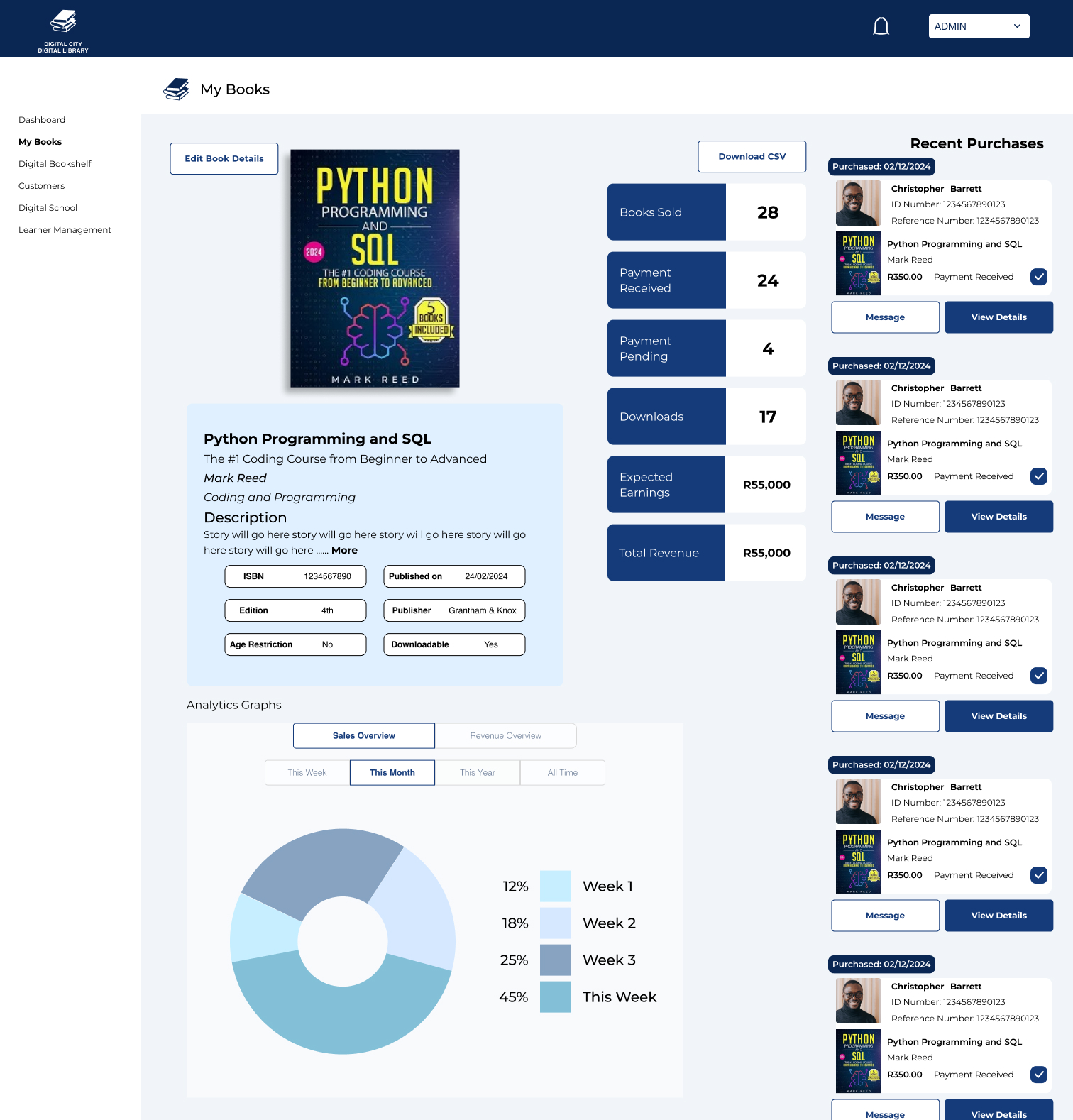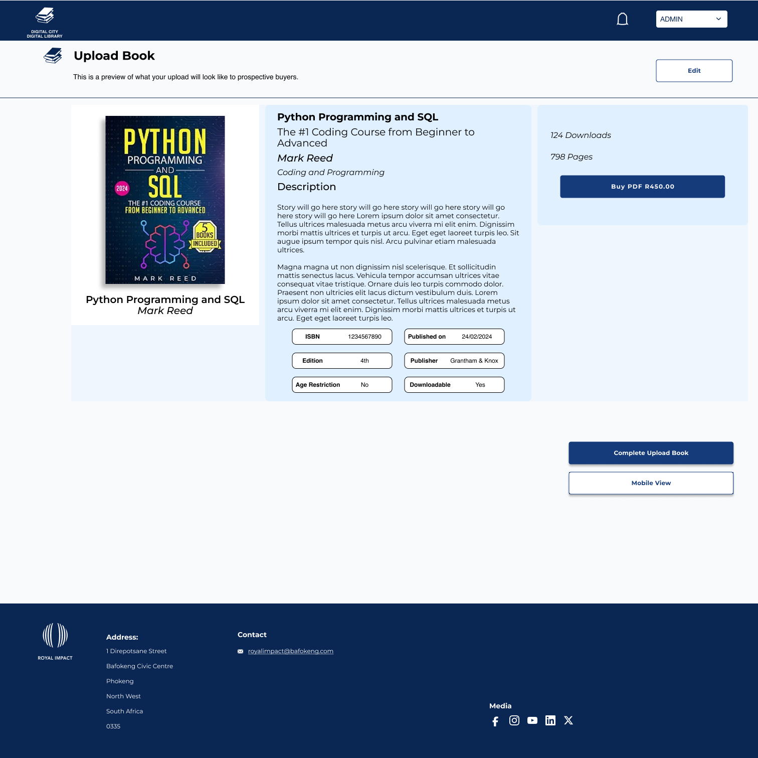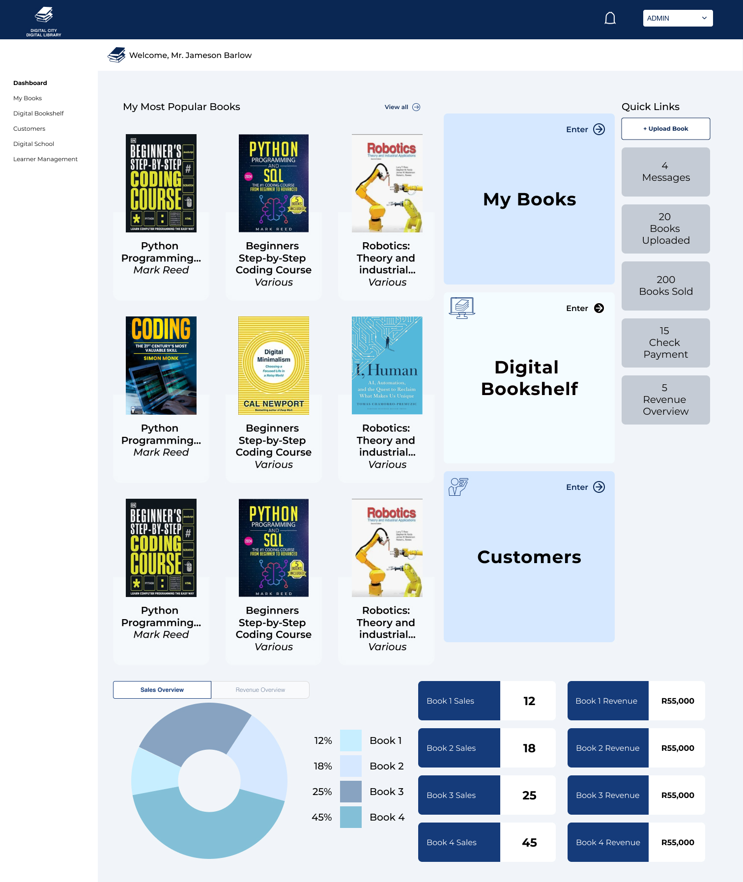 Designing a Digital Library/ Bookstore platform for members of the Digital City (Southern African Setswana diaspora) to help with the Digital School Programmes, as well as a platform for the community having quick and easy access to books.