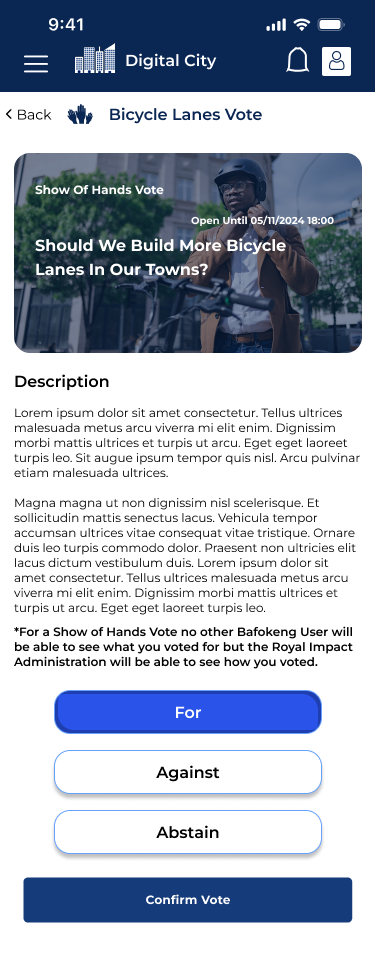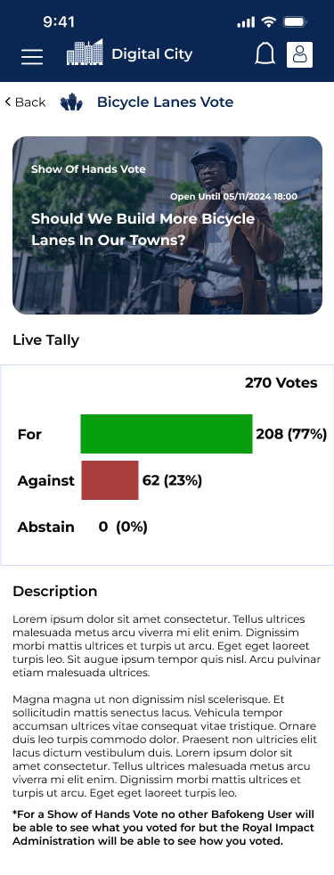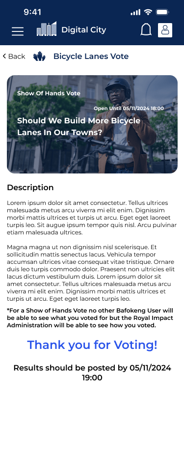 Governance isn’t easy but moving certain votes for the affairs of these communities into the 21st century and insuring that they are all within a government owned system (the sign-up process for the Digital City is incredibly in-depth and all citizens must be approved by their Kgosana (chief) and 2 Administrators) allows for decision making and voting within the community as simple as possible. Why wait for hours in polling queues when it can be done with the tap of a finger or during a in-person or virtual meeting. It allows the community to have more transparency but also add familiarity and some fun in the process. The transparency creates trust in the system and henceforth hopefully trust in their system of governance. It’s easy to access constituents, it makes the community feel closer to those in charge and it shows that every voice matters.